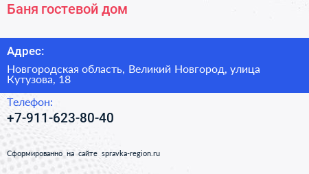 Баня, гостевой дом по адресу Новгородская область, Великий Новгород, улица Кутузова, 18 в дальнейшем Организация, размещена в следующих категориях: