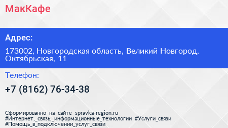 МакКафе по адресу 173002, Новгородская область, Великий Новгород, Октябрьская, 11 в дальнейшем Организация, размещена в следующих категориях: