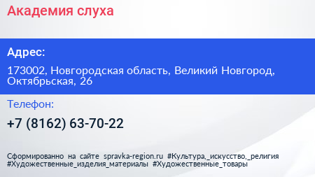 Академия слуха по адресу 173002, Новгородская область, Великий Новгород, Октябрьская, 26 в дальнейшем Организация, размещена в следующих категориях: