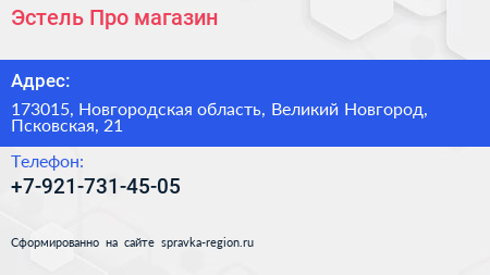 Эстель-Про, магазин по адресу 173015, Новгородская область, Великий Новгород, Псковская, 21 в дальнейшем Организация, размещена в следующих категориях: