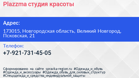 Plazzma, студия красоты по адресу 173015, Новгородская область, Великий Новгород, Псковская, 21 в дальнейшем Организация, размещена в следующих категориях: