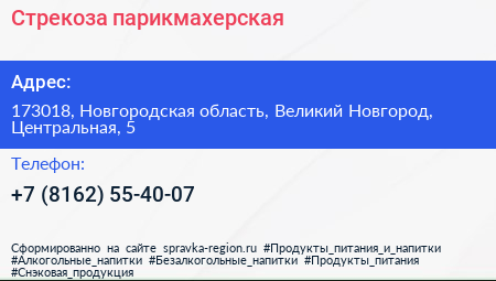 Стрекоза, парикмахерская по адресу 173018, Новгородская область, Великий Новгород, Центральная, 5 в дальнейшем Организация, размещена в следующих категориях: