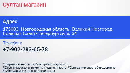 Султан, магазин по адресу 173003, Новгородская область, Великий Новгород, Большая Санкт-Петербургская, 34 в дальнейшем Организация, размещена в следующих категориях: