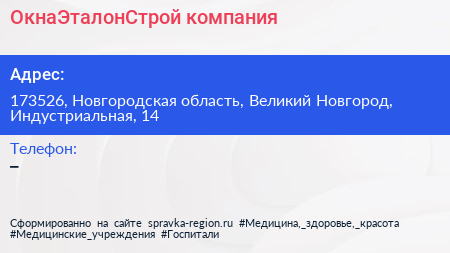 ОкнаЭталонСтрой, компания по адресу 173526, Новгородская область, Великий Новгород, Индустриальная, 14 в дальнейшем Организация, размещена в следующих категориях: