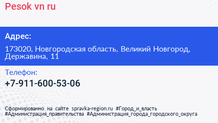 Pesok-vn.ru по адресу 173020, Новгородская область, Великий Новгород, Державина, 11 в дальнейшем Организация, размещена в следующих категориях: