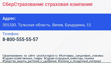 СберСтрахование, страховая компания по адресу 301320, Тульская область, Венев, Бундурина, 11 в дальнейшем Организация, размещена в следующих категориях: