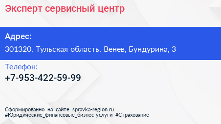 Эксперт, сервисный центр по адресу 301320, Тульская область, Венев, Бундурина, 3 в дальнейшем Организация, размещена в следующих категориях: