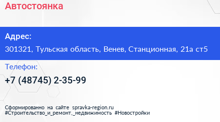 Автостоянка по адресу 301321, Тульская область, Венев, Станционная, 21а ст5 в дальнейшем Организация, размещена в следующих категориях: