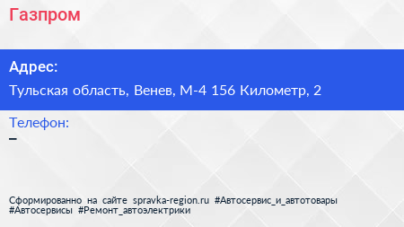 Газпром по адресу Тульская область, Венев, М-4 156 Километр, 2 в дальнейшем Организация, размещена в следующих категориях: