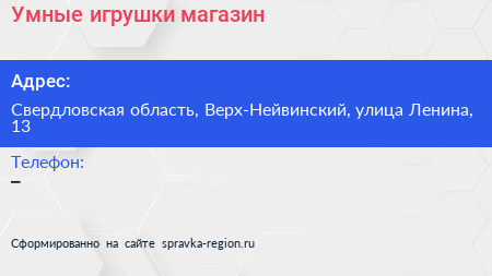 Умные игрушки, магазин по адресу Свердловская область, Верх-Нейвинский, улица Ленина, 13 в дальнейшем Организация, размещена в следующих категориях: