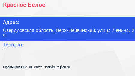 Красное & Белое по адресу Свердловская область, Верх-Нейвинский, улица Ленина, 2 c. в дальнейшем Организация, размещена в следующих категориях: