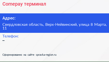 Comepay, терминал по адресу Свердловская область, Верх-Нейвинский, улица 8 Марта, 11 в дальнейшем Организация, размещена в следующих категориях: