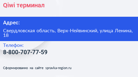 Qiwi, терминал по адресу Свердловская область, Верх-Нейвинский, улица Ленина, 18 в дальнейшем Организация, размещена в следующих категориях: