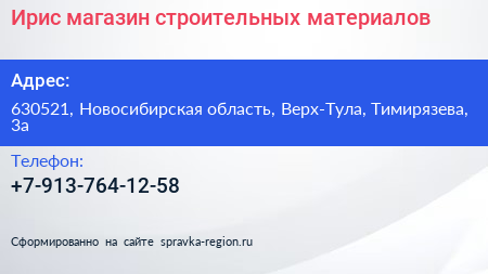 Ирис, магазин строительных материалов по адресу 630521, Новосибирская область, Верх-Тула, Тимирязева, 3а в дальнейшем Организация, размещена в следующих категориях: