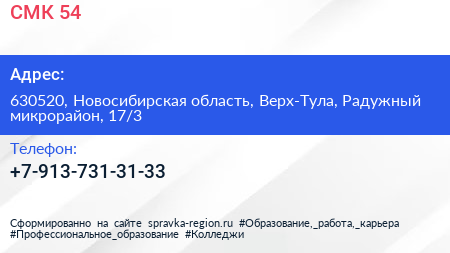 СМК-54 по адресу 630520, Новосибирская область, Верх-Тула, Радужный микрорайон, 17/3 в дальнейшем Организация, размещена в следующих категориях: