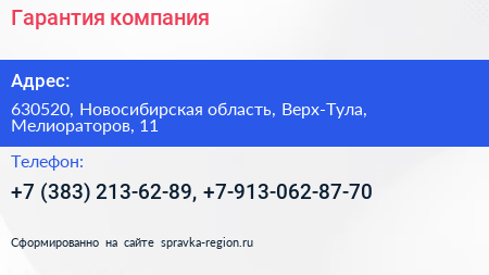 Гарантия, компания по адресу 630520, Новосибирская область, Верх-Тула, Мелиораторов, 11 в дальнейшем Организация, размещена в следующих категориях: