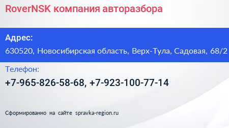 RoverNSK, компания авторазбора по адресу 630520, Новосибирская область, Верх-Тула, Садовая, 68/2 в дальнейшем Организация, размещена в следующих категориях: