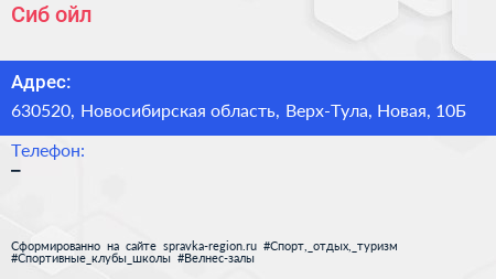 Сиб-ойл по адресу 630520, Новосибирская область, Верх-Тула, Новая, 10Б в дальнейшем Организация, размещена в следующих категориях: