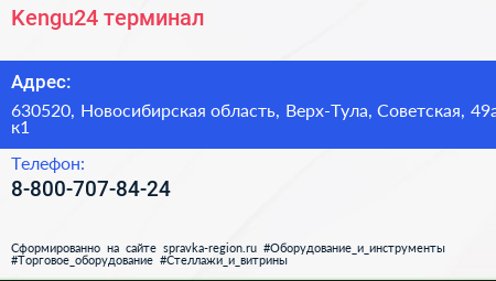 Kengu24, терминал по адресу 630520, Новосибирская область, Верх-Тула, Советская, 49а к1 в дальнейшем Организация, размещена в следующих категориях: