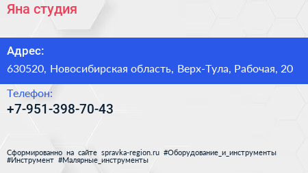 Яна, студия по адресу 630520, Новосибирская область, Верх-Тула, Рабочая, 20 в дальнейшем Организация, размещена в следующих категориях: