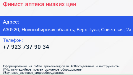 Финист, аптека низких цен по адресу 630520, Новосибирская область, Верх-Тула, Советская, 2а в дальнейшем Организация, размещена в следующих категориях: