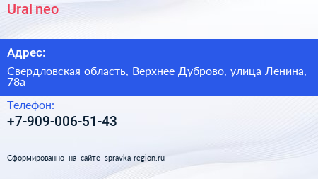 Ural neo по адресу Свердловская область, Верхнее Дуброво, улица Ленина, 78а в дальнейшем Организация, размещена в следующих категориях: