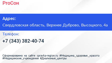 ProСон по адресу Свердловская область, Верхнее Дуброво, Высоцкого, 4а в дальнейшем Организация, размещена в следующих категориях: