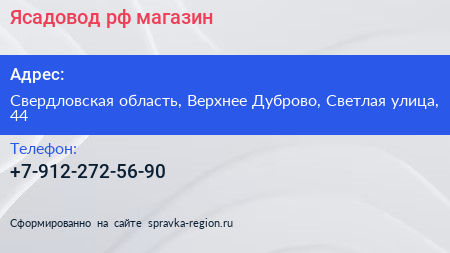 Ясадовод.рф, магазин по адресу Свердловская область, Верхнее Дуброво, Светлая улица, 44 в дальнейшем Организация, размещена в следующих категориях: