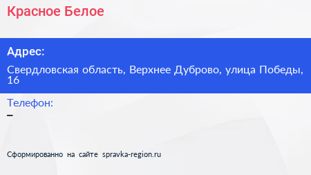 Красное & Белое по адресу Свердловская область, Верхнее Дуброво, улица Победы, 16 в дальнейшем Организация, размещена в следующих категориях: