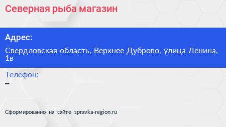 Северная рыба, магазин по адресу Свердловская область, Верхнее Дуброво, улица Ленина, 1в в дальнейшем Организация, размещена в следующих категориях: