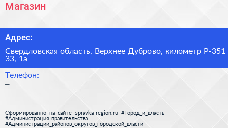 Магазин по адресу Свердловская область, Верхнее Дуброво, километр Р-351 33, 1а в дальнейшем Организация, размещена в следующих категориях:
