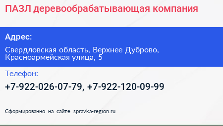 ПАЗЛ, деревообрабатывающая компания по адресу Свердловская область, Верхнее Дуброво, Красноармейская улица, 5 в дальнейшем Организация, размещена в следующих категориях: