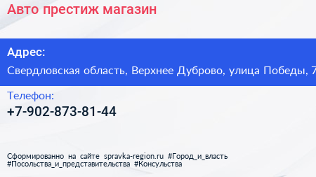 Авто-престиж, магазин по адресу Свердловская область, Верхнее Дуброво, улица Победы, 7 в дальнейшем Организация, размещена в следующих категориях: