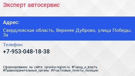 Эксперт, автосервис по адресу Свердловская область, Верхнее Дуброво, улица Победы, 3а в дальнейшем Организация, размещена в следующих категориях: