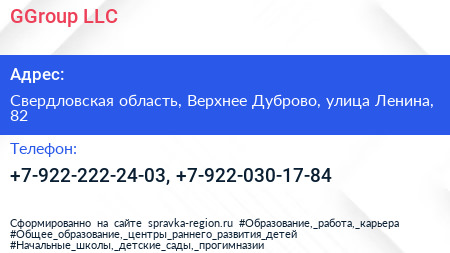 GGroup LLC по адресу Свердловская область, Верхнее Дуброво, улица Ленина, 82 в дальнейшем Организация, размещена в следующих категориях: