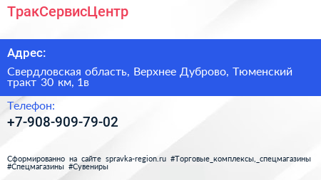 ТракСервисЦентр по адресу Свердловская область, Верхнее Дуброво, Тюменский тракт 30 км, 1в в дальнейшем Организация, размещена в следующих категориях: