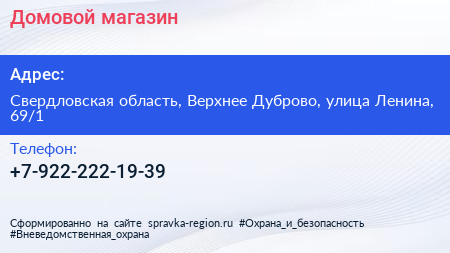 Домовой, магазин по адресу Свердловская область, Верхнее Дуброво, улица Ленина, 69/1 в дальнейшем Организация, размещена в следующих категориях:
