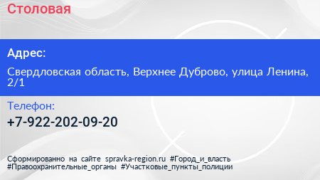 Столовая по адресу Свердловская область, Верхнее Дуброво, улица Ленина, 2/1 в дальнейшем Организация, размещена в следующих категориях: