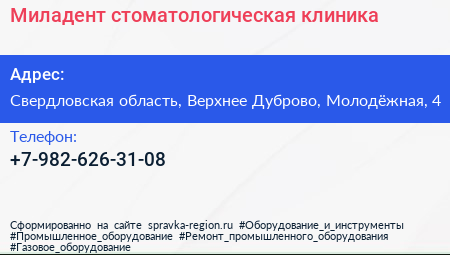 Миладент, стоматологическая клиника по адресу Свердловская область, Верхнее Дуброво, Молодёжная, 4 в дальнейшем Организация, размещена в следующих категориях: