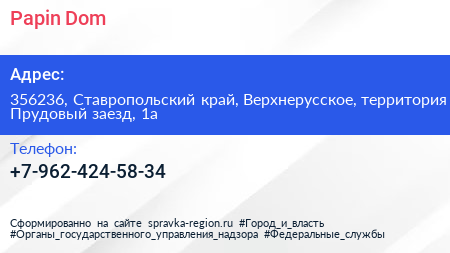 Papin Dom по адресу 356236, Ставропольский край, Верхнерусское, территория Прудовый заезд, 1а в дальнейшем Организация, размещена в следующих категориях:
