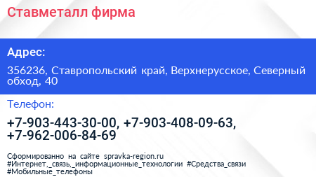 Ставметалл, фирма по адресу 356236, Ставропольский край, Верхнерусское, Северный обход, 40 в дальнейшем Организация, размещена в следующих категориях: