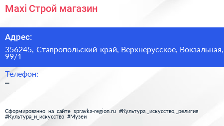 Maxi Строй, магазин по адресу 356245, Ставропольский край, Верхнерусское, Вокзальная, 99/1 в дальнейшем Организация, размещена в следующих категориях: