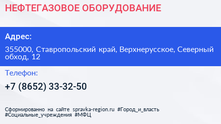 НЕФТЕГАЗОВОЕ ОБОРУДОВАНИЕ по адресу 355000, Ставропольский край, Верхнерусское, Северный обход, 12 в дальнейшем Организация, размещена в следующих категориях:
