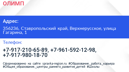 ОЛИМП по адресу 356236, Ставропольский край, Верхнерусское, улица Гагарина, 1 в дальнейшем Организация, размещена в следующих категориях: