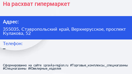 На расхват, гипермаркет по адресу 355035, Ставропольский край, Верхнерусское, проспект Кулакова, 52 в дальнейшем Организация, размещена в следующих категориях: