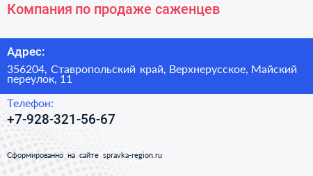 Компания по продаже саженцев по адресу 356204, Ставропольский край, Верхнерусское, Майский переулок, 11 в дальнейшем Организация, размещена в следующих категориях: