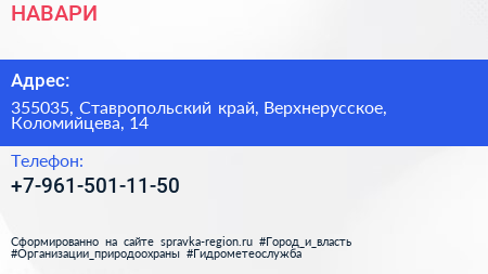 НАВАРИ по адресу 355035, Ставропольский край, Верхнерусское, Коломийцева, 14 в дальнейшем Организация, размещена в следующих категориях: