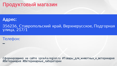 Продуктовый магазин по адресу 356236, Ставропольский край, Верхнерусское, Подгорная улица, 217/1 в дальнейшем Организация, размещена в следующих категориях: