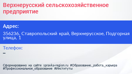 Верхнерусский, сельскохозяйственное предприятие по адресу 356236, Ставропольский край, Верхнерусское, Подгорная улица, 1 в дальнейшем Организация, размещена в следующих категориях: