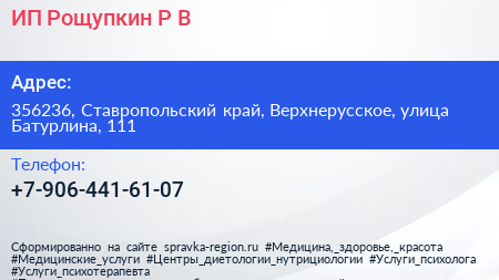 ИП Рощупкин Р.В. по адресу 356236, Ставропольский край, Верхнерусское, улица Батурлина, 111 в дальнейшем Организация, размещена в следующих категориях: